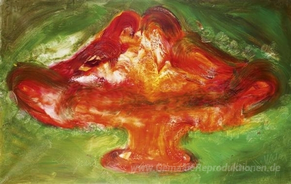 Wir bieten Ihnen eine handgefertigte Reproduktion auf Leinwand des berühmten Kunstwerks 'La grande rosée pour une porcelaine de septembre' von Jean Messagier, aus dem Reproduktionsmuseum.