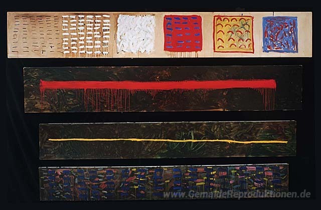 Wir bieten Ihnen eine handgefertigte Reproduktion auf Leinwand des berühmten Kunstwerks 'Lange Diagramm, Groß-Diagramm' von Pat Steir, aus dem Reproduktionsmuseum.