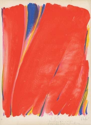 Wir bieten Ihnen eine handgefertigte Reproduktion auf Leinwand des berühmten Kunstwerks 'Le Rideau Rouge (Châteauroux)' von Olivier Debre, aus dem Reproduktionsmuseum.