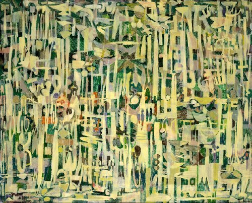 Wir bieten Ihnen eine handgefertigte Reproduktion auf Leinwand des berühmten Kunstwerks 'Les hautes herbes' von Pierre Alechinsky, aus dem Reproduktionsmuseum.