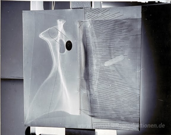 Wir bieten Ihnen eine handgefertigte Reproduktion auf Leinwand des berühmten Kunstwerks 'Lichtmalerei auf Klapp Zelluloid (Position 1)' von Laszlo Moholy-Nagy, aus dem Reproduktionsmuseum.