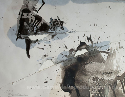 Wir bieten Ihnen eine handgefertigte Reproduktion auf Leinwand des berühmten Kunstwerks 'Loch Esquisse' von Shozo Shimamoto, aus dem Reproduktionsmuseum.