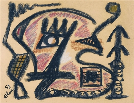 Wir bieten Ihnen eine handgefertigte Reproduktion auf Leinwand des berühmten Kunstwerks 'L'Oiseau de Barbarie' von Jean-Michel Atlan, aus dem Reproduktionsmuseum.