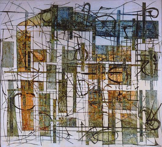 Wir bieten Ihnen eine handgefertigte Reproduktion auf Leinwand des berühmten Kunstwerks 'Lookscape' von Jimmy Ernst, aus dem Reproduktionsmuseum.