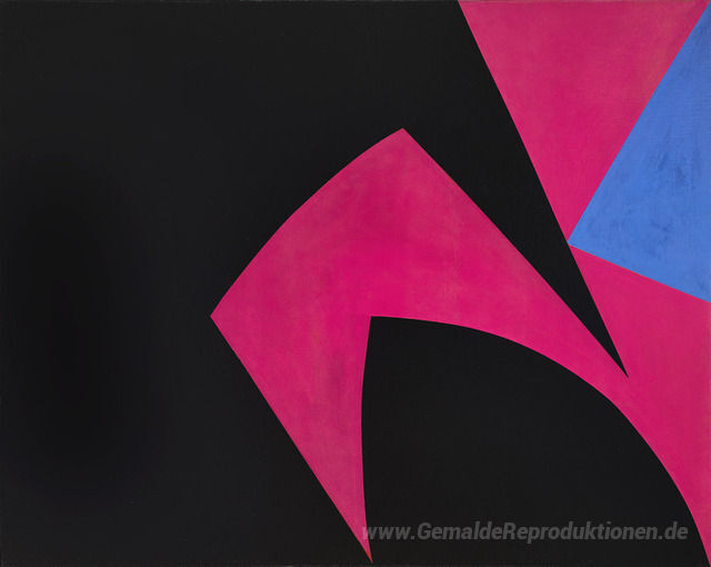 Wir bieten Ihnen eine handgefertigte Reproduktion auf Leinwand des berühmten Kunstwerks 'Magischen Raum Forms (Schwarz, Fuchsia)' von Lorser Feitelson, aus dem Reproduktionsmuseum.