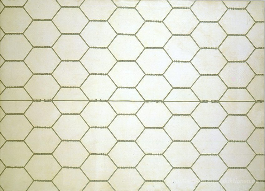 Wir bieten Ihnen eine handgefertigte Reproduktion auf Leinwand des berühmten Kunstwerks 'Maschendraht' von Alex Hay, aus dem Reproduktionsmuseum.