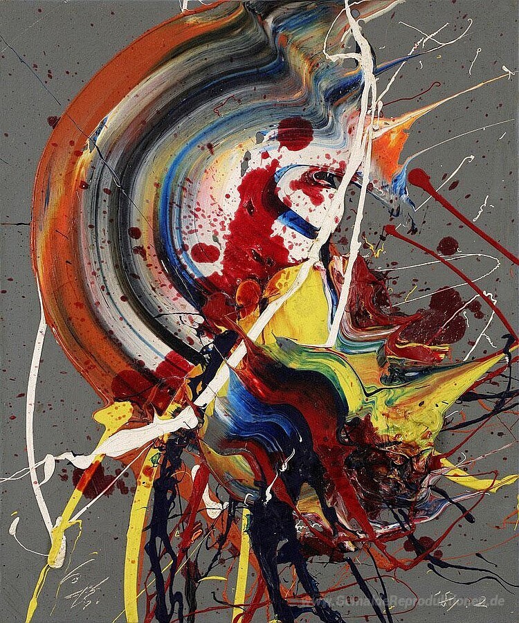 Wir bieten Ihnen eine handgefertigte Reproduktion auf Leinwand des berühmten Kunstwerks 'Matsuri no Hallo' von Kazuo Shiraga, aus dem Reproduktionsmuseum.