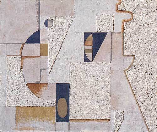 Wir bieten Ihnen eine handgefertigte Reproduktion auf Leinwand des berühmten Kunstwerks 'Mauerbild mit Segmenten' von Willi Baumeister, aus dem Reproduktionsmuseum.