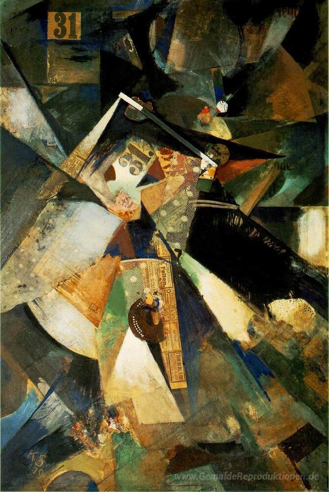 Wir bieten Ihnen eine handgefertigte Reproduktion auf Leinwand des berühmten Kunstwerks 'Merzbild Thirty-One' von Kurt Schwitters, aus dem Reproduktionsmuseum.
