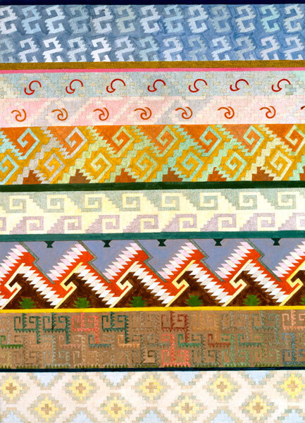 Wir bieten Ihnen eine handgefertigte Reproduktion auf Leinwand des berühmten Kunstwerks 'Mitla' von Joyce Kozloff, aus dem Reproduktionsmuseum.