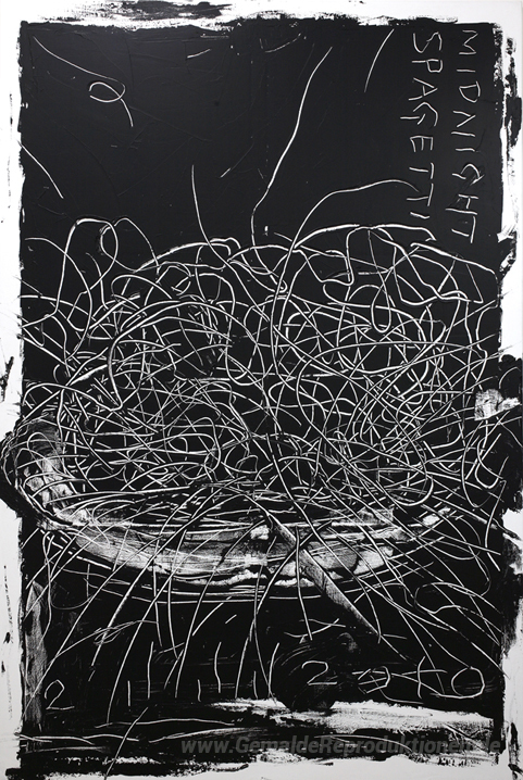 Wir bieten Ihnen eine handgefertigte Reproduktion auf Leinwand des berühmten Kunstwerks 'Mitternacht Spaghetti' von Aki Kuroda, aus dem Reproduktionsmuseum.