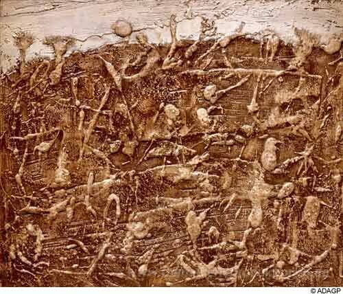 Wir bieten Ihnen eine handgefertigte Reproduktion auf Leinwand des berühmten Kunstwerks 'Moonrise an Geister' von Jean Dubuffet, aus dem Reproduktionsmuseum.