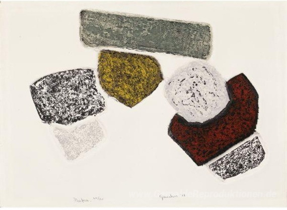 Wir bieten Ihnen eine handgefertigte Reproduktion auf Leinwand des berühmten Kunstwerks 'Naka' von Yves Gaucher, aus dem Reproduktionsmuseum.