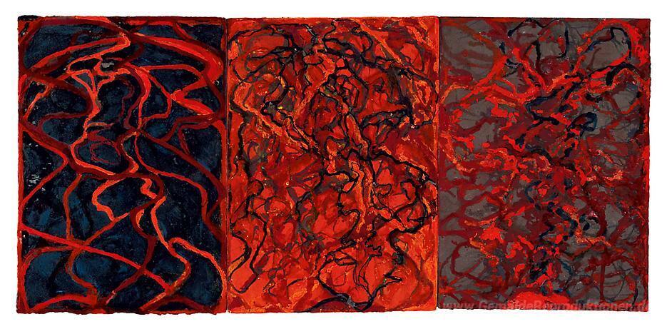 Wir bieten Ihnen eine handgefertigte Reproduktion auf Leinwand des berühmten Kunstwerks 'Nevisian Triptychon' von Brice Marden, aus dem Reproduktionsmuseum.