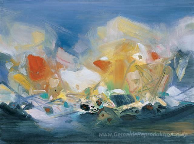 Wir bieten Ihnen eine handgefertigte Reproduktion auf Leinwand des berühmten Kunstwerks 'Nuée Immaterielle' von Chu Teh-Chun, aus dem Reproduktionsmuseum.