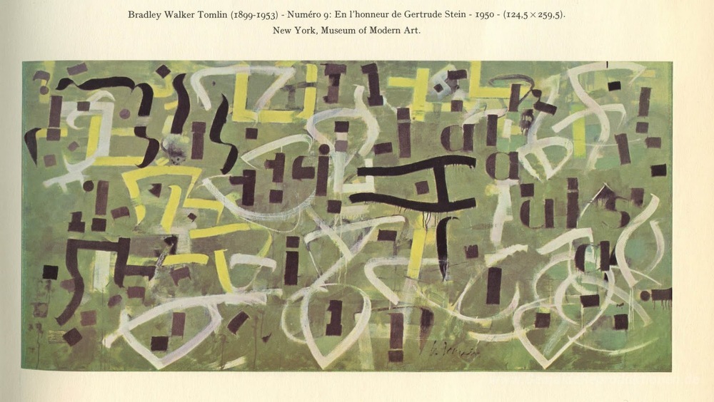 Wir bieten Ihnen eine handgefertigte Reproduktion auf Leinwand des berühmten Kunstwerks 'Nummer 9. In Praise of Gertrude Stein' von Bradley Walker Tomlin, aus dem Reproduktionsmuseum.