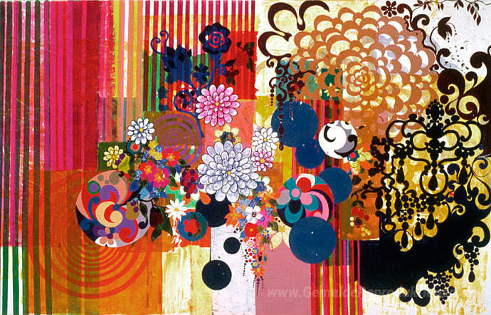 Wir bieten Ihnen eine handgefertigte Reproduktion auf Leinwand des berühmten Kunstwerks 'O Elefante Azul' von Beatriz Milhazes, aus dem Reproduktionsmuseum.