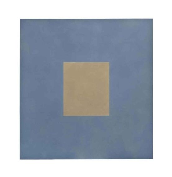 Wir bieten Ihnen eine handgefertigte Reproduktion auf Leinwand des berühmten Kunstwerks 'Ocker mit Dusty Blau' von Peter Joseph, aus dem Reproduktionsmuseum.
