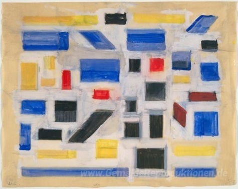 Wir bieten Ihnen eine handgefertigte Reproduktion auf Leinwand des berühmten Kunstwerks 'Ohne Titel' von Bart van der Leck, aus dem Reproduktionsmuseum.