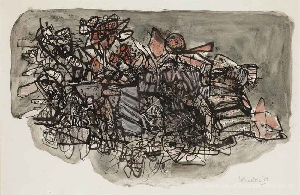 Wir bieten Ihnen eine handgefertigte Reproduktion auf Leinwand des berühmten Kunstwerks 'Ohne Titel' von Corneille, aus dem Reproduktionsmuseum.