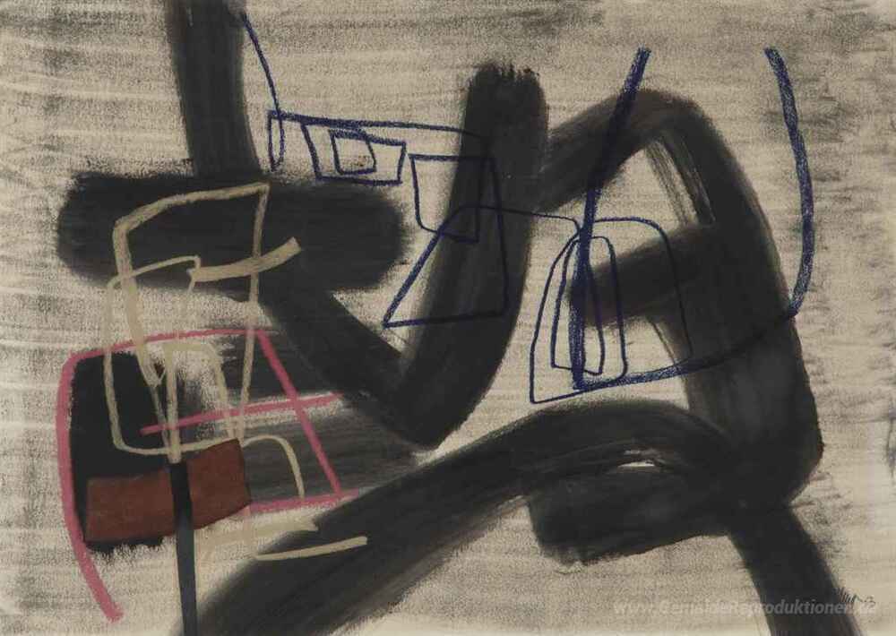 Wir bieten Ihnen eine handgefertigte Reproduktion auf Leinwand des berühmten Kunstwerks 'Ohne Titel' von Fritz Winter, aus dem Reproduktionsmuseum.