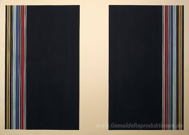 Wir bieten Ihnen eine handgefertigte Reproduktion auf Leinwand des berühmten Kunstwerks 'Ohne Titel' von Gene Davis, aus dem Reproduktionsmuseum.