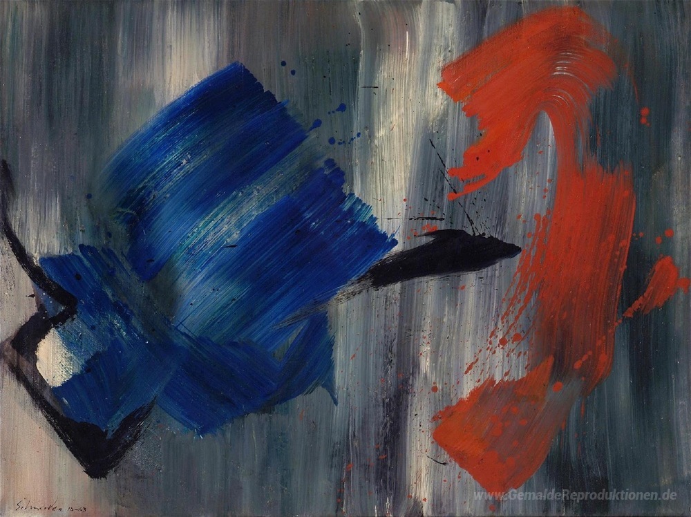 Wir bieten Ihnen eine handgefertigte Reproduktion auf Leinwand des berühmten Kunstwerks 'Ohne Titel' von Gerard Schneider, aus dem Reproduktionsmuseum.