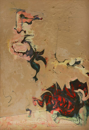 Wir bieten Ihnen eine handgefertigte Reproduktion auf Leinwand des berühmten Kunstwerks 'Ohne Titel' von Hassel Smith, aus dem Reproduktionsmuseum.