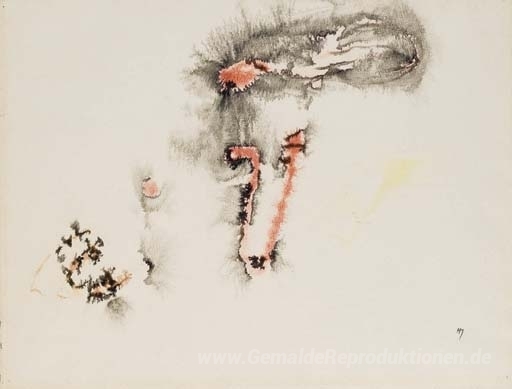 Wir bieten Ihnen eine handgefertigte Reproduktion auf Leinwand des berühmten Kunstwerks 'Ohne Titel' von Henri Michaux, aus dem Reproduktionsmuseum.