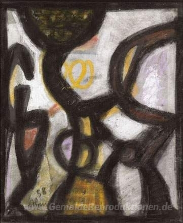 Wir bieten Ihnen eine handgefertigte Reproduktion auf Leinwand des berühmten Kunstwerks 'Ohne Titel' von Jean-Michel Atlan, aus dem Reproduktionsmuseum.