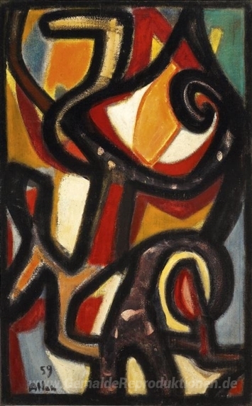 Wir bieten Ihnen eine handgefertigte Reproduktion auf Leinwand des berühmten Kunstwerks 'Ohne Titel' von Jean-Michel Atlan, aus dem Reproduktionsmuseum.