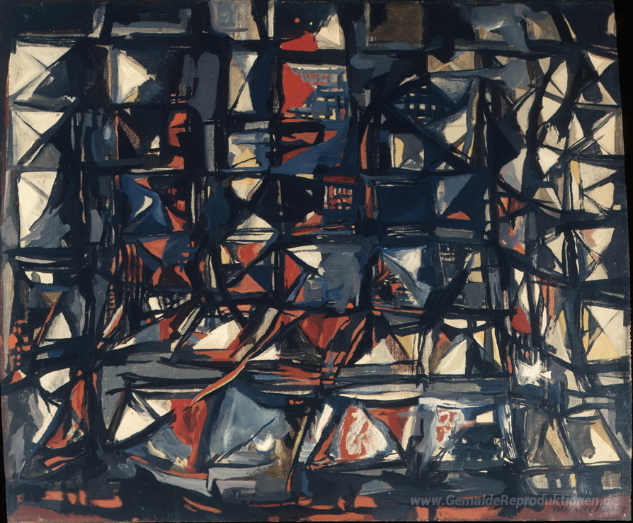 Wir bieten Ihnen eine handgefertigte Reproduktion auf Leinwand des berühmten Kunstwerks 'Ohne Titel' von Maria Helena Vieira da Silva, aus dem Reproduktionsmuseum.