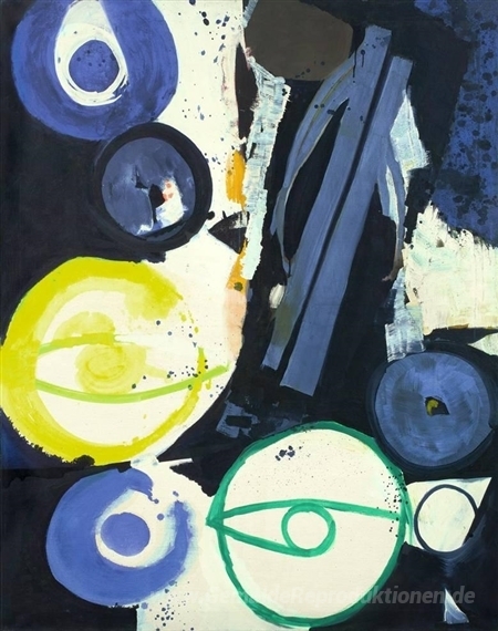 Wir bieten Ihnen eine handgefertigte Reproduktion auf Leinwand des berühmten Kunstwerks 'Orakel' von Ernst Wilhelm Nay, aus dem Reproduktionsmuseum.