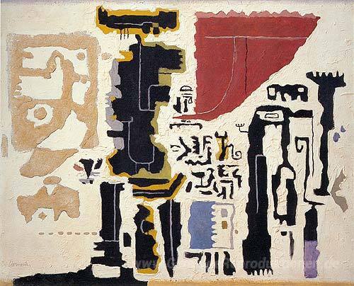 Wir bieten Ihnen eine handgefertigte Reproduktion auf Leinwand des berühmten Kunstwerks 'Ovambo' von Willi Baumeister, aus dem Reproduktionsmuseum.