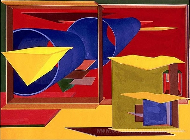 Wir bieten Ihnen eine handgefertigte Reproduktion auf Leinwand des berühmten Kunstwerks 'Pachinko' von Al Held, aus dem Reproduktionsmuseum.