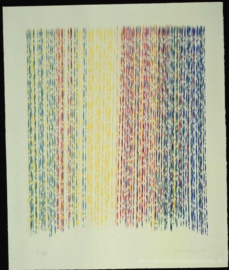 Wir bieten Ihnen eine handgefertigte Reproduktion auf Leinwand des berühmten Kunstwerks 'Paplito della Luce' von Piero Dorazio, aus dem Reproduktionsmuseum.