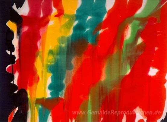 Wir bieten Ihnen eine handgefertigte Reproduktion auf Leinwand des berühmten Kunstwerks 'Para III' von Morris Louis, aus dem Reproduktionsmuseum.