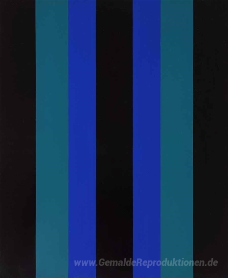 Wir bieten Ihnen eine handgefertigte Reproduktion auf Leinwand des berühmten Kunstwerks 'Parallèles bleues' von Guido Molinari, aus dem Reproduktionsmuseum.