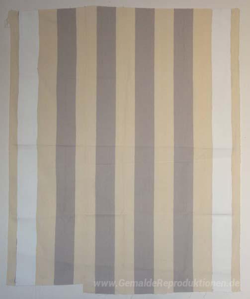 Wir bieten Ihnen eine handgefertigte Reproduktion auf Leinwand des berühmten Kunstwerks 'Peinture acrylique blanche sur blanc et tissu rayé gris clair' von Daniel Buren, aus dem Reproduktionsmuseum.