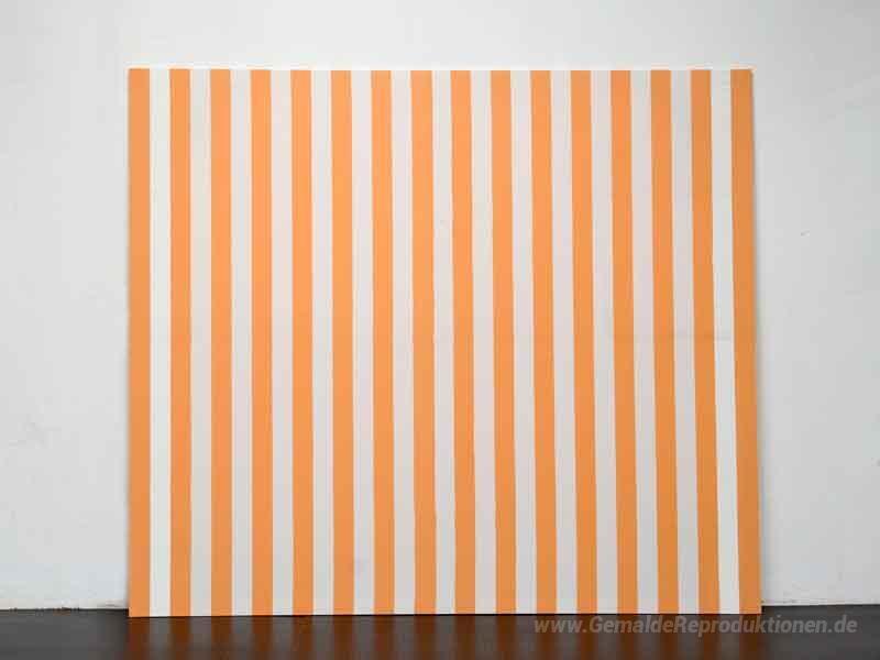 Wir bieten Ihnen eine handgefertigte Reproduktion auf Leinwand des berühmten Kunstwerks 'Peinture acrylique blanche sur blanc et tissu rayé Orange' von Daniel Buren, aus dem Reproduktionsmuseum.