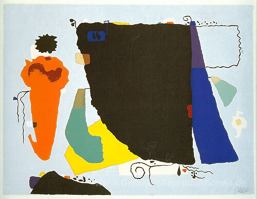 Wir bieten Ihnen eine handgefertigte Reproduktion auf Leinwand des berühmten Kunstwerks 'Phantom mit roter Figur' von Willi Baumeister, aus dem Reproduktionsmuseum.