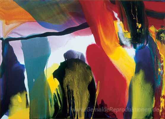 Wir bieten Ihnen eine handgefertigte Reproduktion auf Leinwand des berühmten Kunstwerks 'Phenomena Solstice Encounter' von Paul Jenkins, aus dem Reproduktionsmuseum.