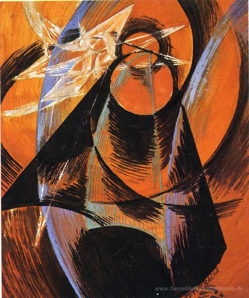 Wir bieten Ihnen eine handgefertigte Reproduktion auf Leinwand des berühmten Kunstwerks 'Planeten Merkur vorbei an der Sonne' von Giacomo Balla, aus dem Reproduktionsmuseum.