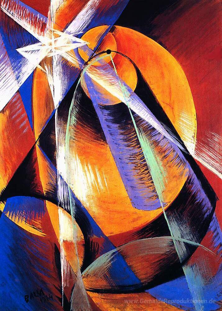 Dieses Ölgemälde schafft eine faszinierende Atmosphäre in jedem Raum, indem es den Betrachter einlädt, über die Elemente des Universums nachzudenken. Die harmonische Farbpalette und die kraftvolle Komposition ziehen das Auge an und fördern eine entspannte sowie inspirierende Umgebung. Lassen Sie sich von der künstlerischen Magie und dem einzigartigen Stil von Giacomo Balla in die Welt der Ölgemälde entführen und verwandeln Sie Ihr Zuhause in einen Ort, der Kreativität und Eleganz ausstrahlt.