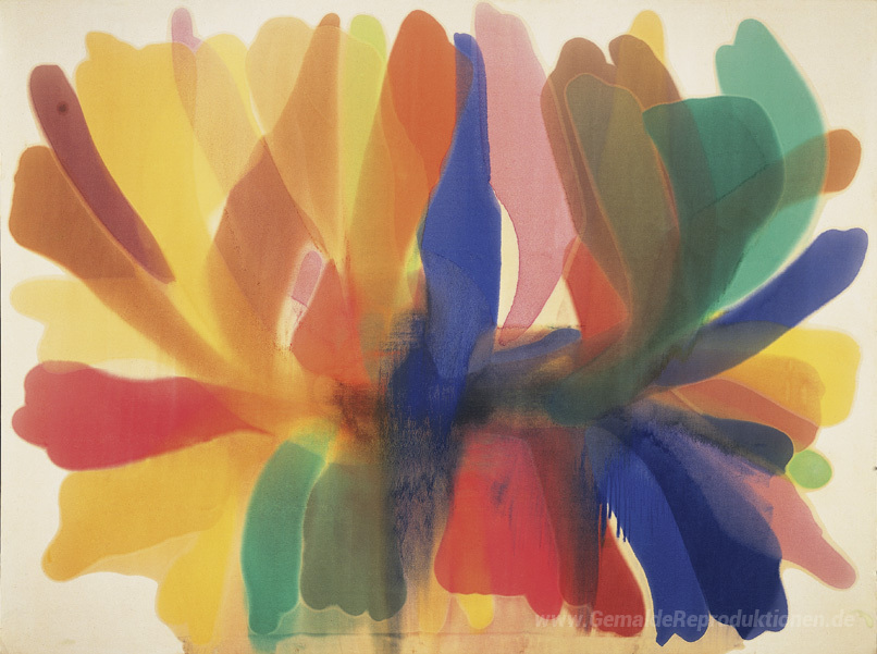 Wir bieten Ihnen eine handgefertigte Reproduktion auf Leinwand des berühmten Kunstwerks 'Point of Tranquility' von Morris Louis, aus dem Reproduktionsmuseum.