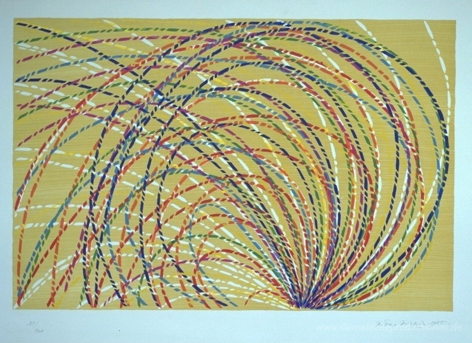 Wir bieten Ihnen eine handgefertigte Reproduktion auf Leinwand des berühmten Kunstwerks 'Polarlicht' von Piero Dorazio, aus dem Reproduktionsmuseum.