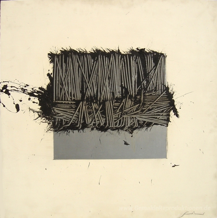 Wir bieten Ihnen eine handgefertigte Reproduktion auf Leinwand des berühmten Kunstwerks 'Protetto einer Meta' von Emilio Scanavino, aus dem Reproduktionsmuseum.
