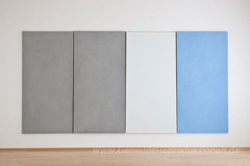 Wir bieten Ihnen eine handgefertigte Reproduktion auf Leinwand des berühmten Kunstwerks 'Quartetto indivisibile' von Ettore Spalletti, aus dem Reproduktionsmuseum.