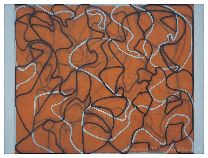Wir bieten Ihnen eine handgefertigte Reproduktion auf Leinwand des berühmten Kunstwerks 'Red Boden Schreiben' von Brice Marden, aus dem Reproduktionsmuseum.
