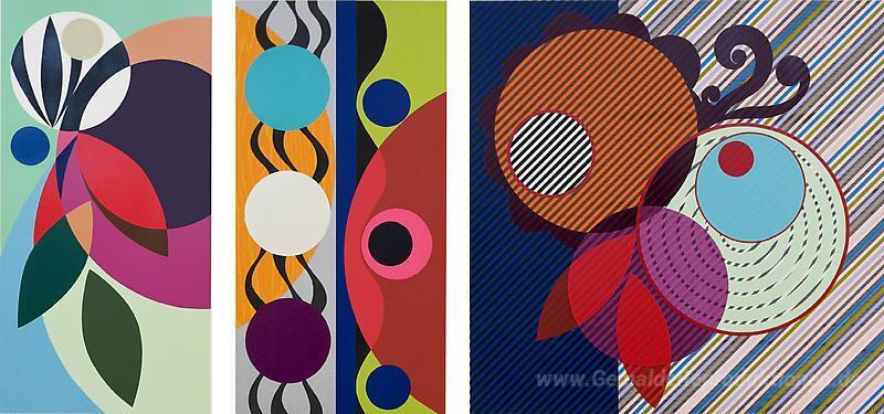 Wir bieten Ihnen eine handgefertigte Reproduktion auf Leinwand des berühmten Kunstwerks 'Red Pepper (Triptychon)' von Beatriz Milhazes, aus dem Reproduktionsmuseum.
